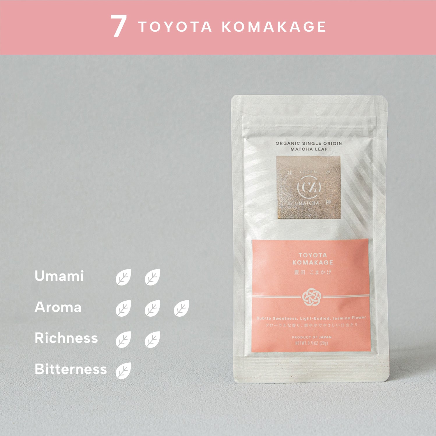 飲む直前に挽き、フレッシュな抹茶を楽しめるよう、CUZEN MATCHAの抹茶マシンに最適化したサイズ・形・乾燥度の抹茶リーフを茶葉の状態でお届けします。